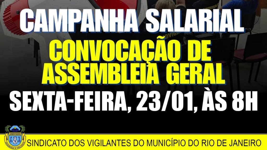Na próxima sexta-feira, 23/01, às 8h, acontecerá a Assembleia Geral da categoria.