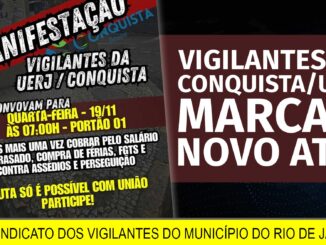 Os Vigilantes da empresa Conquista, lotados na UERJ, convocam um novo ato amanhã, às 7h, no Portão 1. A pauta continua urgente: salário atrasado, direitos básicos desrespeitados e falta de condições dignas de trabalho. O […]