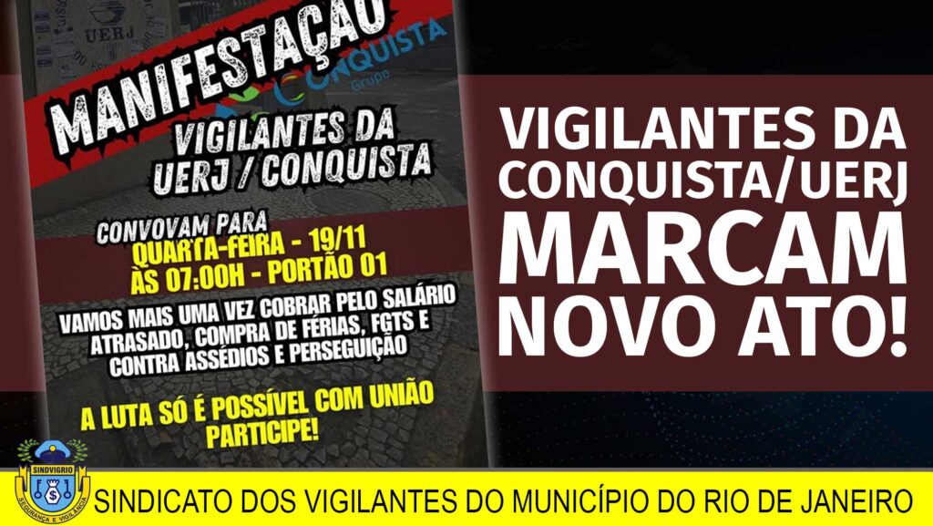 Os Vigilantes da empresa Conquista, lotados na UERJ, convocam um novo ato amanhã, às 7h, no Portão 1.