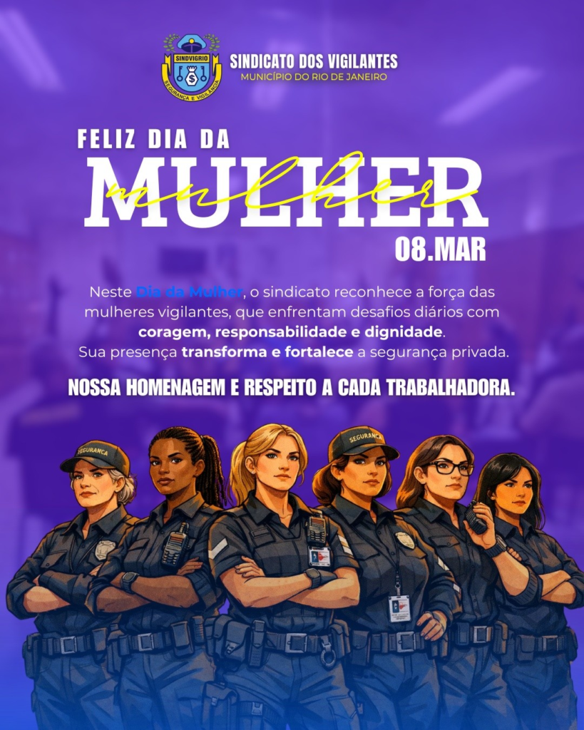 O SINDVIG-Rio parabeniza todas as vigilantes pelo Dia Internacional das Mulheres. Que a luta por respeito, igualdade e valorização continue avançando todos os dias. Parabéns a todas as mulheres da nossa categoria!