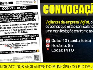 O SINDVIGRIO, Convoca os vigilantes da empresa Vigfat de todos os postos sem salário. Não é de hoje que a empresa VIGFAT Vigilância e segurança, vem descumprindo a nossa cct, diante dos atrasos frequentes de […]