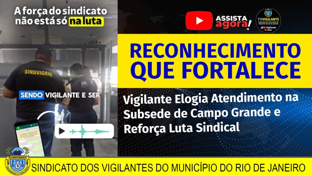 Recebemos um áudio de uma vigilante elogiando o atendimento na Subsede de Campo Grande, e ficamos muito felizes com esse reconhecimento.